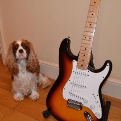 Dennis and Tina guitar and dog